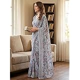 SIRIL Women's Floral Printed Georgette Saree with Unstitched Blouse Piece