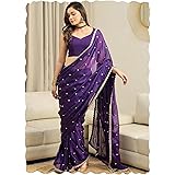 SIRIL Women's Georgette Foil Printed Saree with Unstitched Blouse Piece