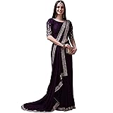 SIRIL Women's Satin Silk Hot Fixing Stone Work Saree with Unstitched Blouse