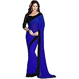 MIRCHI FASHION Women's Faux Georgette Solid Contrast Lace Border Sari with Blouse Saree
