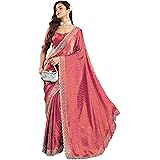 DHYANOM Women's Ready to Wear 1 Minute Pre Pleated Readymade Pure Real Satin Silk Saree with Handwork Moti Lace Border Work with Unstitched Blouse Piece