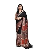 BLACK BEAUTY KING Women's Ajrakh Printed Modal Silk Natural Gajji Silk Soft Saree & Blouse(Unstitched)